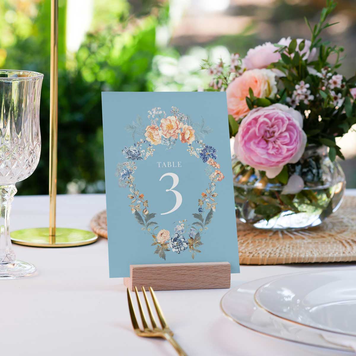 Effortlessly elevate your style with this luxurious, vintage-inspired Table Cards from our iconic Bridgerton Lake Collection. Versatile and chic, featuring beautiful blue and peach florals, that can be paired perfectly with menu and place cards.