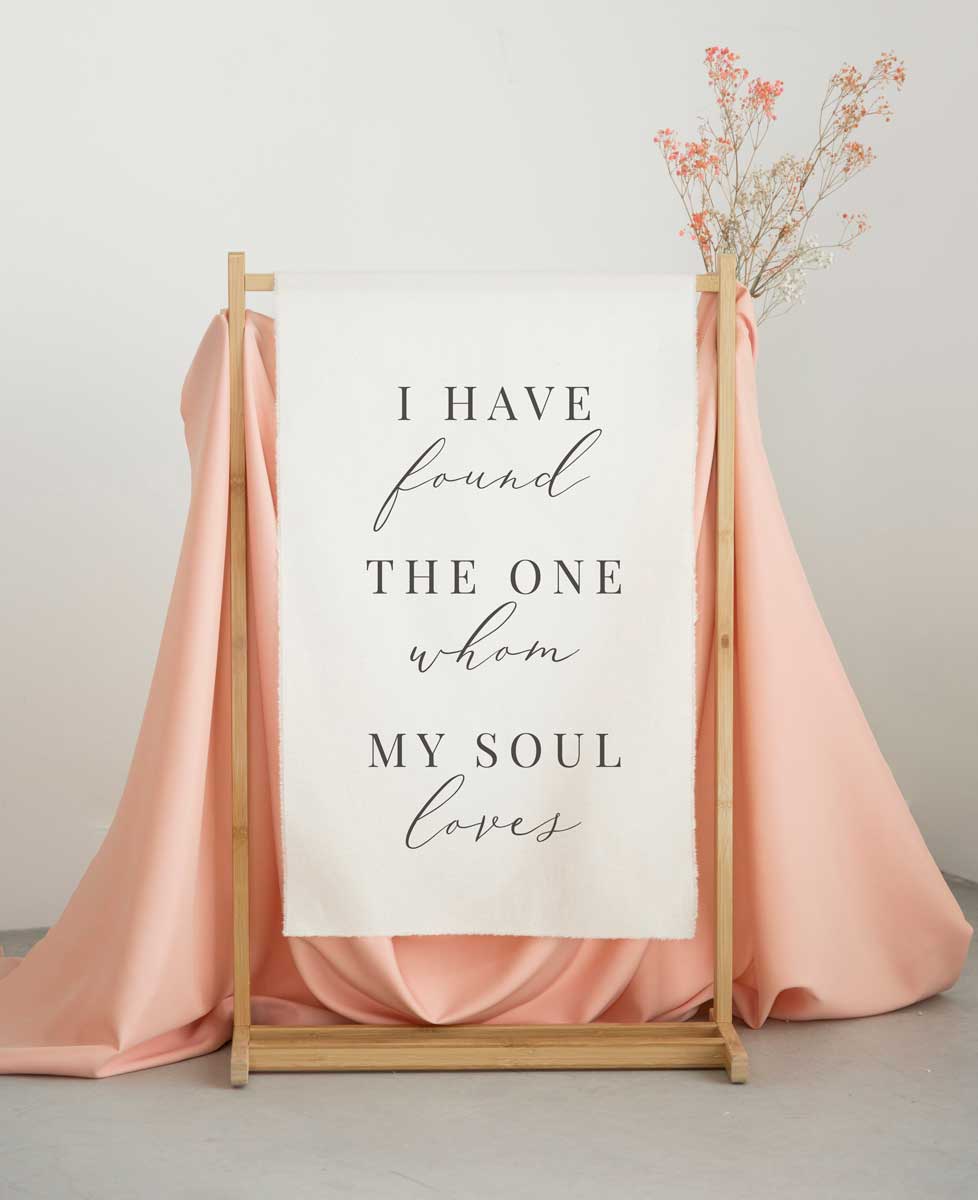 'I have Found the One whom my Soul Loves' Design. Printed single-sided on beautiful fabric material with overlocked edges (unhemmed).